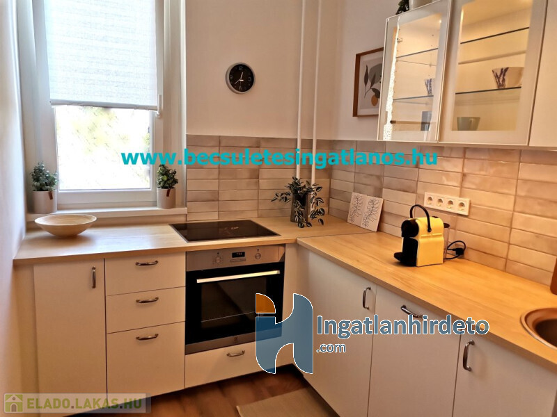 A lakásban minden vezeték, nyílászáró, burkolat és szaniter megújult, a konyha vadonatúj gépekkel felszerelt.