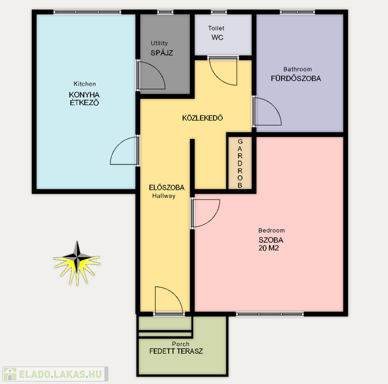 - Az 1960-as években épült társasházi ingatlanban kialakításra került 1 szoba, egy konyha étkezővel, spájz, fürdőszoba, külön wc, előszoba és egy fedett terasz.