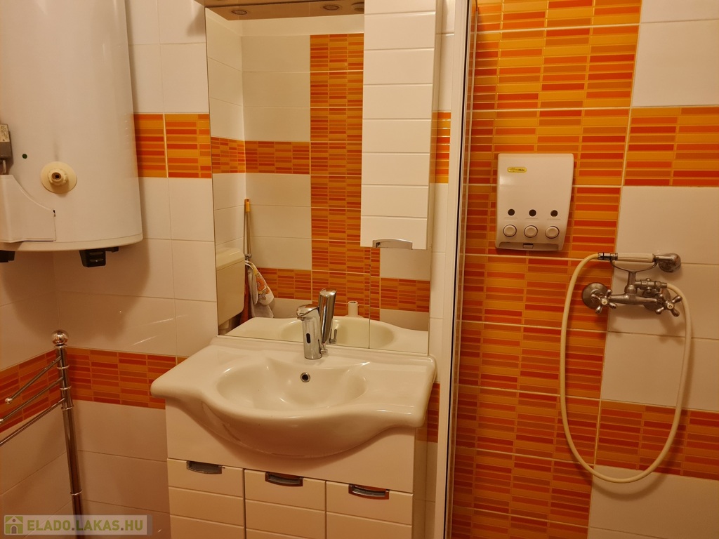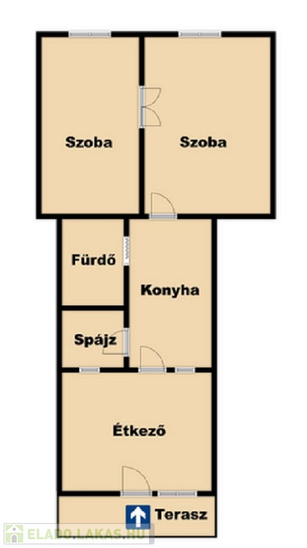 Lakás 59 m2 lakóterületű. Szoba, fürdőszoba, étkező, konyha és spájz helyiségekből áll.