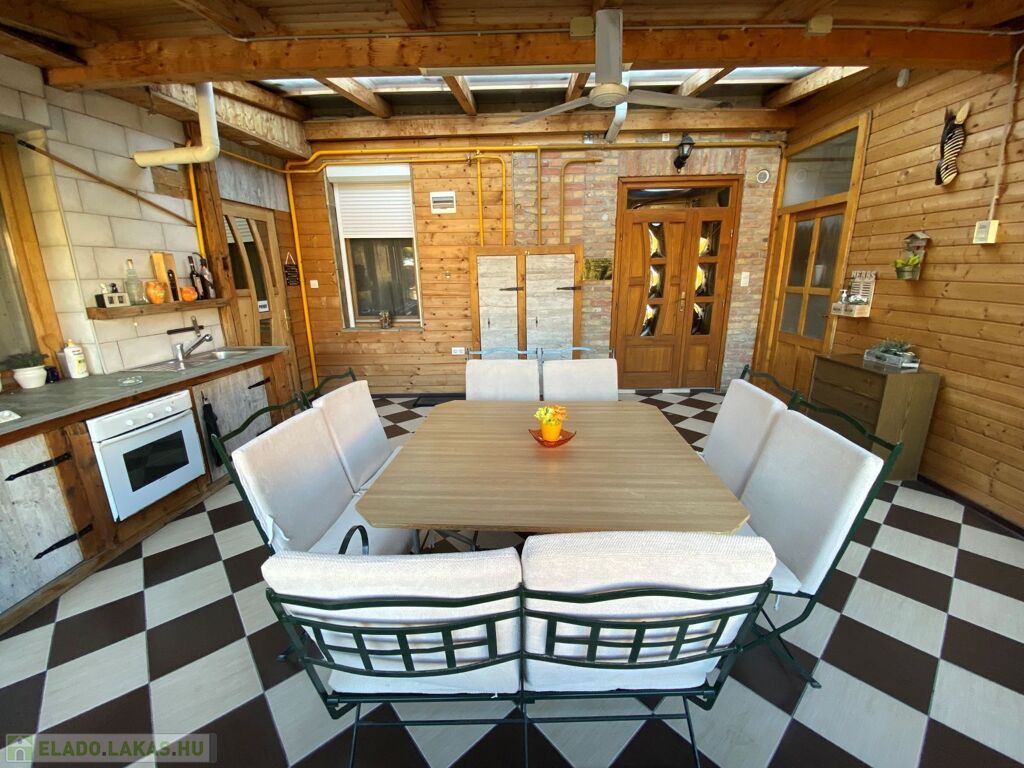A lakás egy 30-m2-es zárható fedett teraszról nyílik, ahol beépítésre került egy nyári konyha teljes felszereltséggel, mely közös a mellette lévő lakással.
