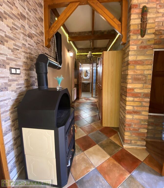 - Fűtés: kondenzációs gázkazán, vízteres kandalló