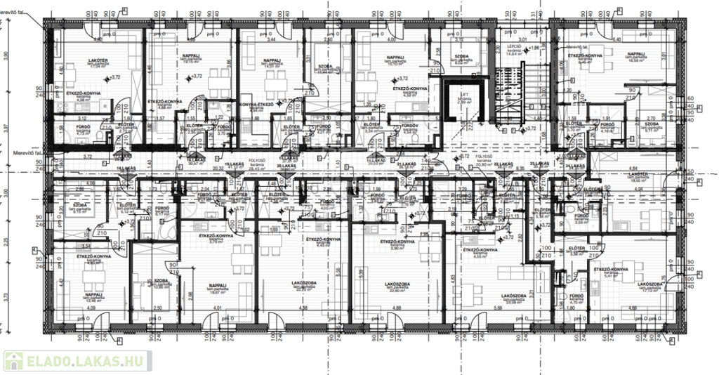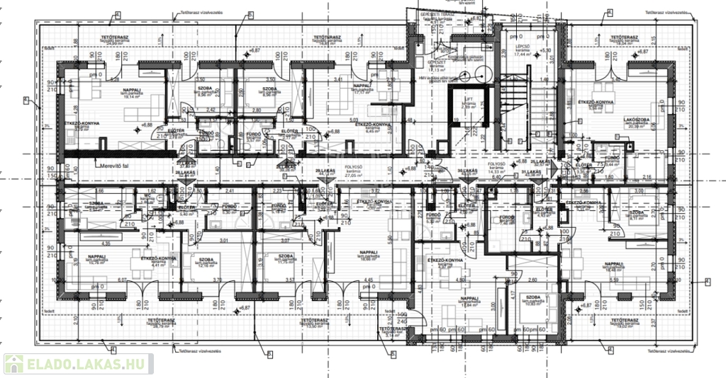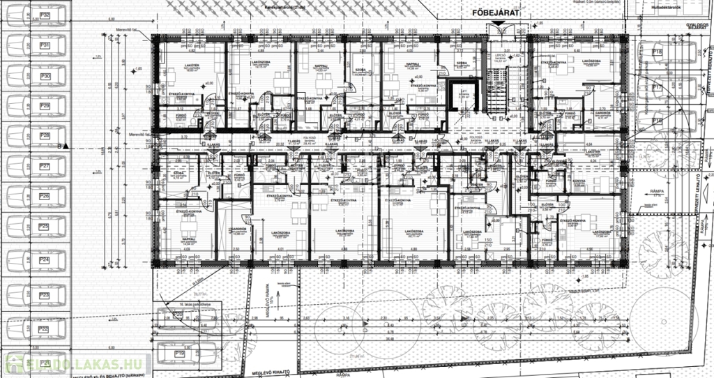 A társasházban 31 db lakás kerül megépítésre, a földszinti és első emeleti lakások erkély nélküliek, a 2 emeleti lakások terasz kapcsolattal rendelkeznek.