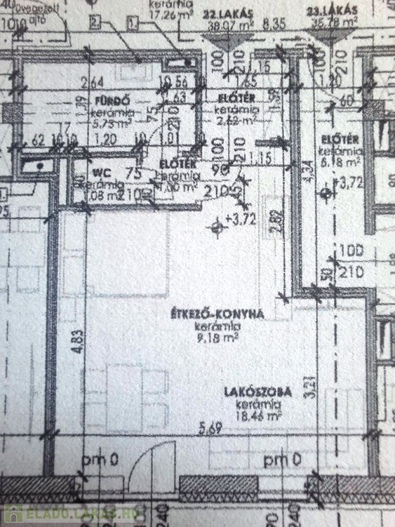 A feltüntetett ár első emelet 22-es lakásra vonatkozik, 38,07 m2 lakótér, helyiségei: amerikai konyhás nappali, szoba, előtér, fürdőszoba, wc.