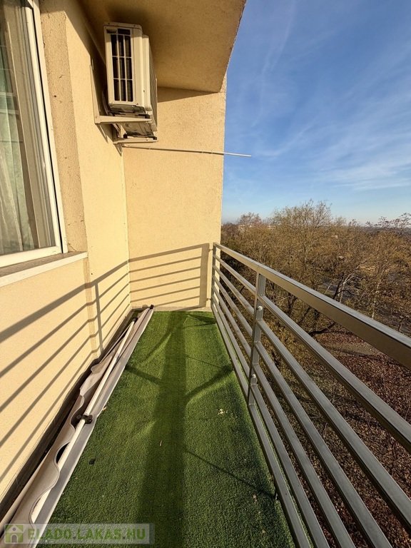 A lakáshoz tartozik egy frissen felújított erkély, új korláttal és műfűvel, továbbá egy saját pince is.