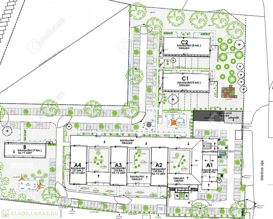Földszinten: kertkapcsolatos lakások terasszal