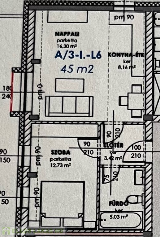 - francia erkély: 1 nm ( nem teljesértékű erkély)
