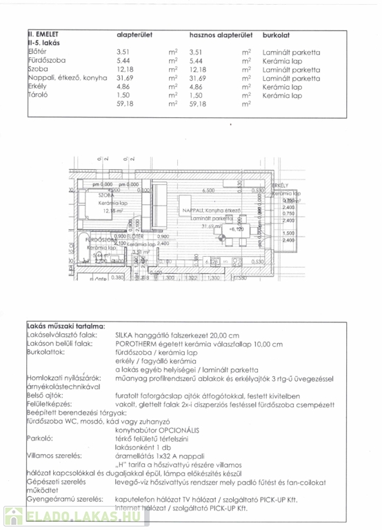 alapterület: 52,82 m2 ( előtér 3,51 m2; fürdőszoba 5,44 m2; szoba 12,18 m2, nappali-étkező-konyha 31,69 m2)
