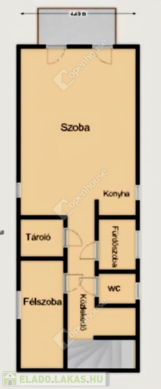 A lakás elrendezése praktikus és jól átgondolt: egy teljes értékű szoba, egy fél szoba, egy konyha étkezővel, egy fürdőszoba, külön mellékhelyiség, közlekedő, kamra, valamint egy erkély tartozik hozzá, amely kellemes lehetőséget biztosít a pihenésre vagy akár reggeli kávézásra.
