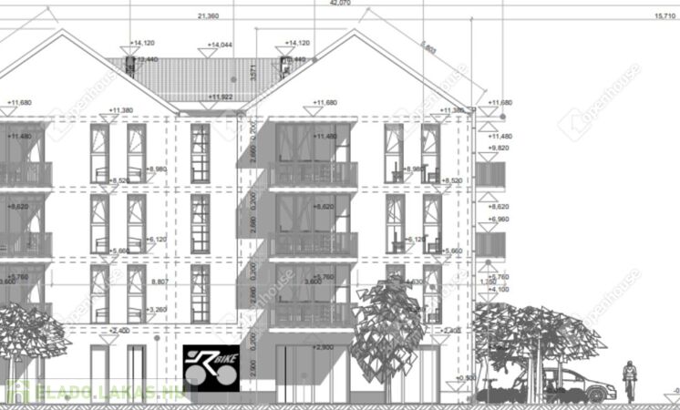Komáromban épülő új 15 lakásos társasház mely mely 43nm-67nm-es kialakításúak,, 15 tároló egységgel, erkéllyel (egy lakás két erkéllyes kivitelezésű) és kültéri térfelszíni gépjármű parkolóval tervezett ingatlan a város központhoz közeli zöldövezeti részén helyezkedik el.