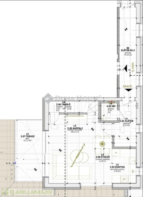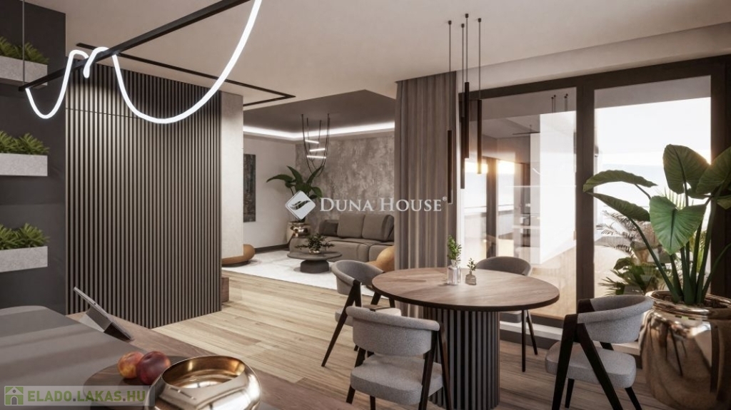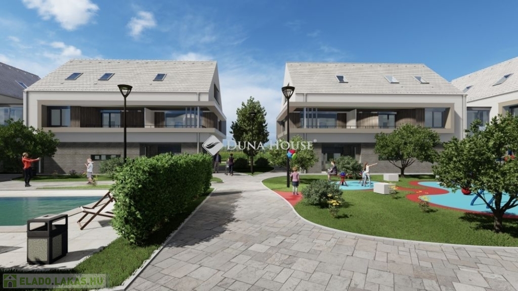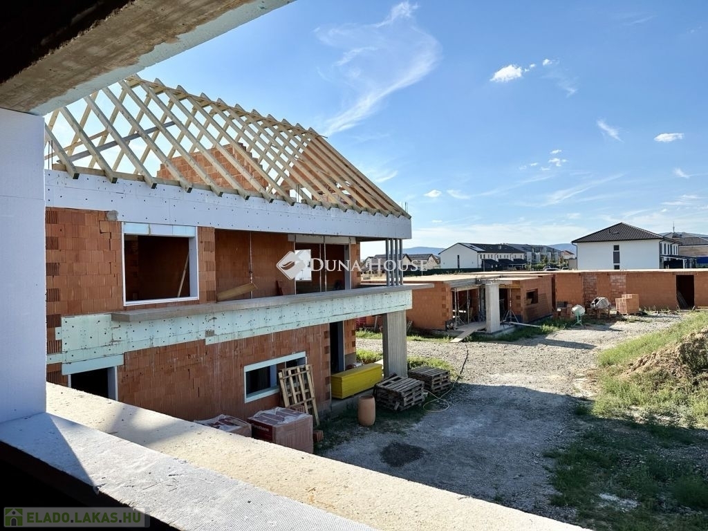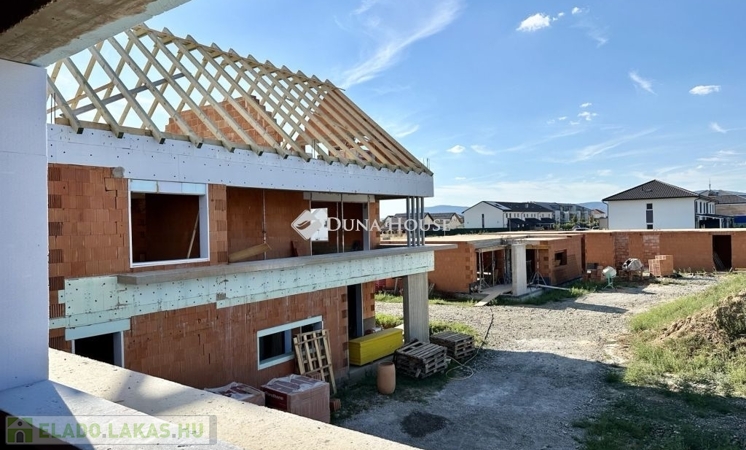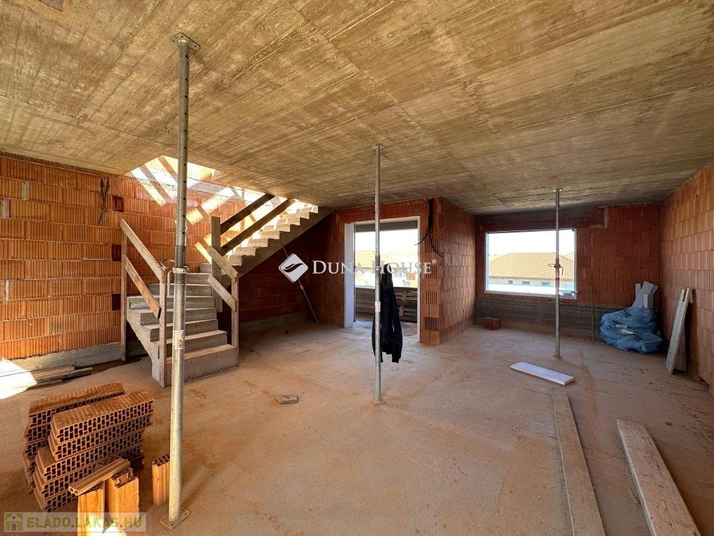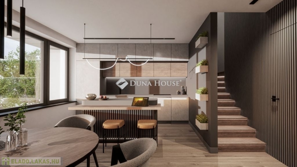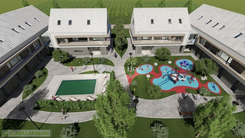 Kozármisleny folyamatosan fejlődő új részén 8 lakásból álló épületben modern, új építésű lakások eladók!Első emeleti belső kétszintes lakás nappali-konyha -étkező, 2 szobás teraszos lakás, saját autó beállóval eladó!4. Lakás első emeleti 77/96m2 helyiség lista:- Nappali- Konyha- Étkező- Terasz 10,27m2- Külön WC helyiség-Tároló helyiségTetőtér:- 2 db szoba- FürdőszobaA lakópark modern, energiahatékony rendszerekkel épül, tökéletes harmóniát képez a természettel.A lakások kényelmes, modern, funkcionális elrendezéssel, szép panorámával, magas, prémium minőségű anyagok felhasználásával csábítják új lakóikat.Minden lakáshoz díjmentes parkolóhely tartozik, a földszinti lakások saját kerttel, az emeleti lakások terasszal rendelkeznek.Az L alakú épület egy védett közösségi teret ölel körül, ahol egy közös park kerül kialakításra. Ez a védett közösségi tér az igények szerint alakítható. Lehet találkozási pont, akár medence és játszótér is megvalósítható erre a területre.A környezet kisgyermekes családok részére is biztonságos, sebességkorlátozott övezet, a közelben új óvoda, kiváló iskola is várja a gyerekeket.Műszaki tartalom:- 30cm X-Therm vázkerámia falazó-blok, 12cm grafitos hőszigetelés- 30cm födém szigetelés- Hőszigetelt műanyag nyílászárók- Földszinti gépházban kialakított hőszivattyús padlófűtésrendszer és lakásonként fan-coil gyors felfűtésre és hűtésre alkalmas rendszer, HMV körben kialakított használati melegvíz cirkulációs rendszer- Konyhákban, fürdőszobákban, Wc-ben kialakított szellőztetőrendszer közvetlenül a szabadba vezetveAz épületben még több lakás elérhető, érdeklődjön a lakások után!