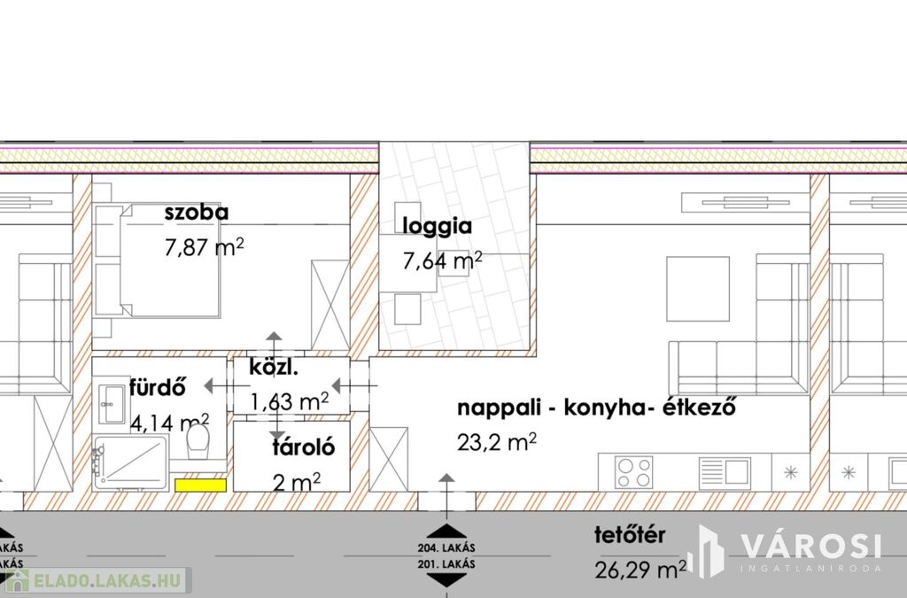 A 1 db amerikai konyhás nappalival, 1db hálószobával, 1 db fürdőszobával, közlekedővel, loggiával rendelkezik.