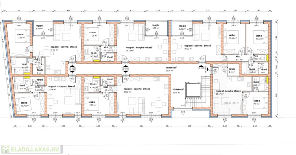 Makón, presztizs lokációval rendelkező - Makói fürdőtől 60 méterre, a Napfény Residenceben - a Páva utcában , Eladó egy most induló, tégla építésű, ELSŐ EMELETI , 57,17 nm-es élettérrel rendelkező, amerikai konyha nappali plusz egy szobás, loggiás lakás (103.lakás).