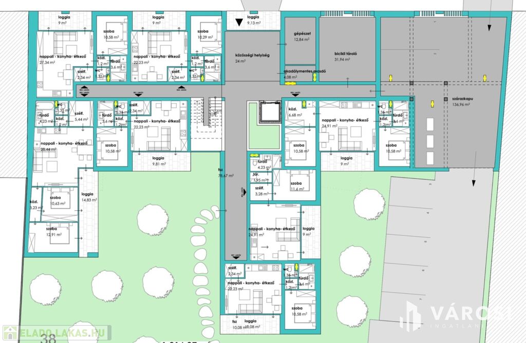 Makón, presztizs lokációval rendelkező - Makói fürdőtől 30 méterre - a Szent János téren, Eladó egy most induló, tégla építésű, FÖLDSZINTI, 55 nm-es élettérrel rendelkező, amerikai konyha nappali plusz két szobás loggiás tégla lakás (006.lakás),liftes házban, amelyhez igény szerint (ez külön megállapodás lehet az eladóval), 10-30 nm közötti saját udvar is járhat hozzá.