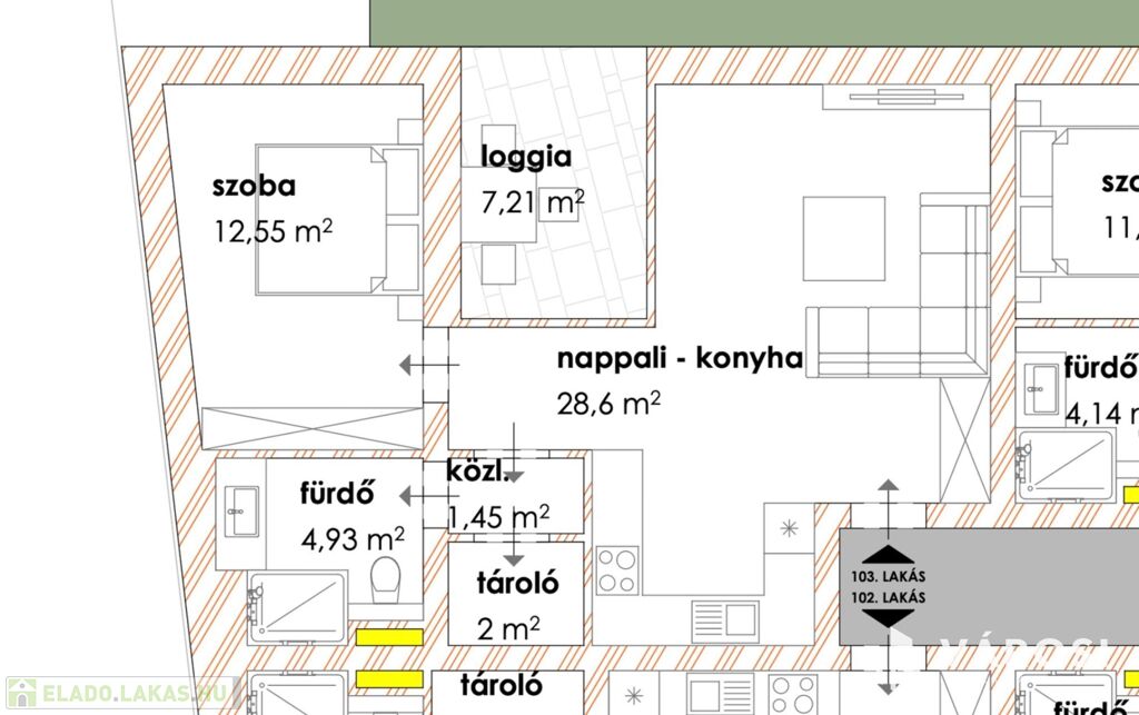 Makón, presztizs lokációval rendelkező - Makói fürdőtől 60 méterre, a Napfény Residenceben - a Páva utcában , Eladó egy most induló, tégla építésű, ELSŐ EMELETI , 57 nm-es élettérrel rendelkező, amerikai konyha nappali plusz egy szobás, loggiás tégla lakás (103.lakás).