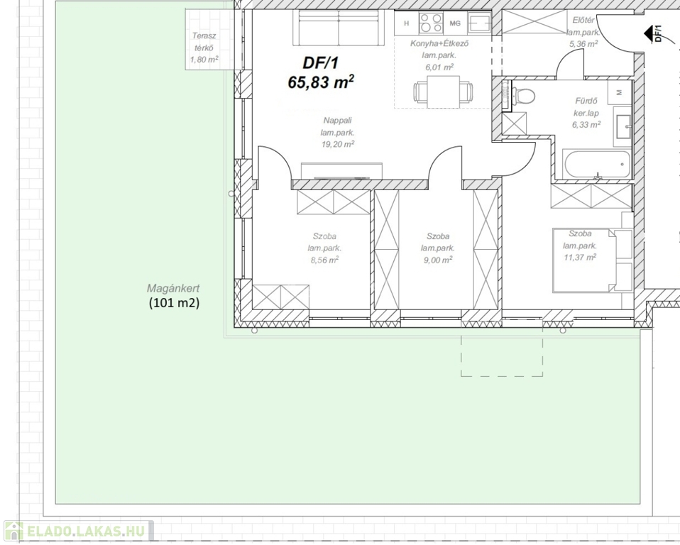 UTOLSÓ ELADÓ LAKÁS AZ ELSŐ ÜTEMBŐL! Mendén csodálatos zöld környezetben a Hétdomb lakóparkban, I. ütem második szakaszában megvalósuló új építésű zárt lakóparkban, A. kategóriás energiatakarékos ( hőszivattyús ) 16 lakásos társasházban, nettó hasznos 65,83 m² alapterületű, FÖLDSZINTI kertkapcsolatos lakást, SAJÁT 101 m² KERTRÉSSZEL kínálunk eladásra ( D épület Földszint 1. Lakás ).