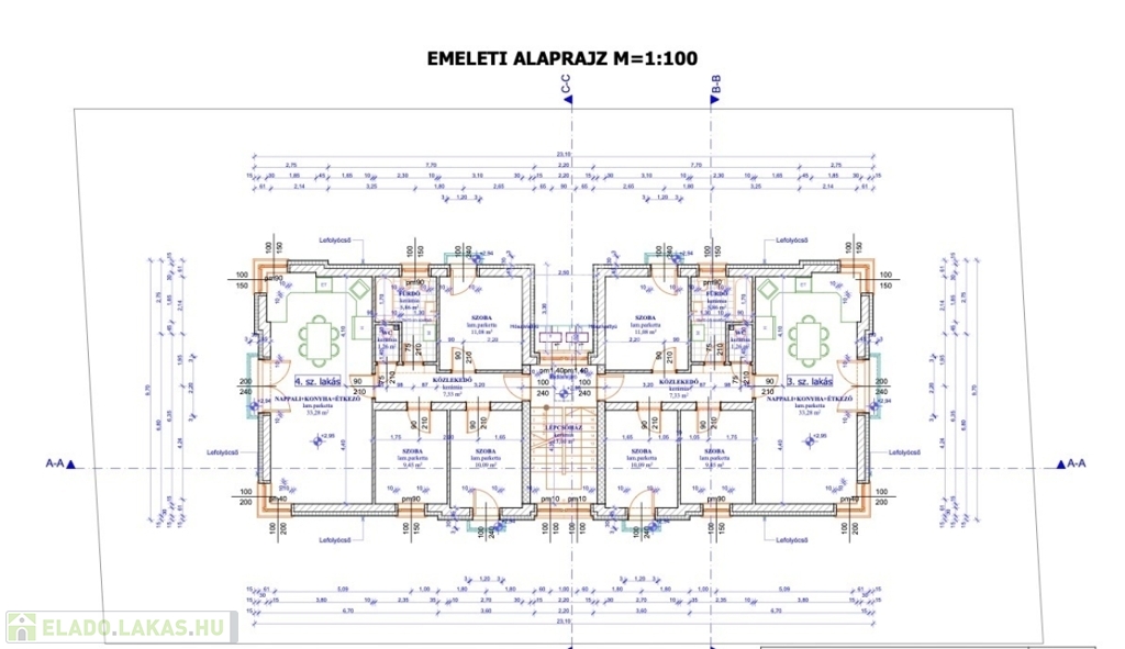 Energiatakarékos kialakítás: 15 cm-es homlokzati hőszigetelés, 3 rétegű műanyag nyílászárók.