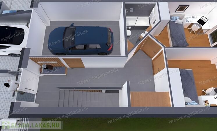 A lakáshoz saját garázs és önálló kertkapcsolat tartozik, így a lakók valódi kertvárosi életérzést élvezhetnek, miközben a városi infrastruktúra is könnyen elérhető.