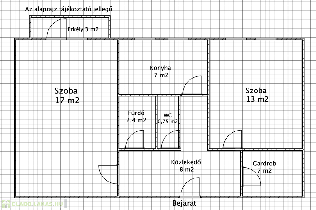 - 55 m²,2 külön nyíló szoba