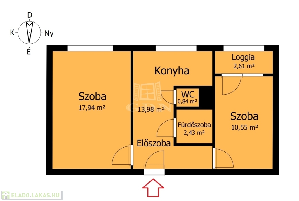 47m2-es, 1 + fél szobás, 4. emeleti lakás.