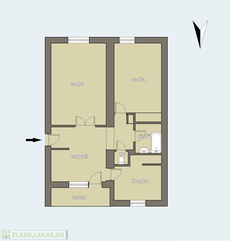 - 2 szoba+nappali, konyha, fürdőszoba, WC, előszoba, erkély, pince