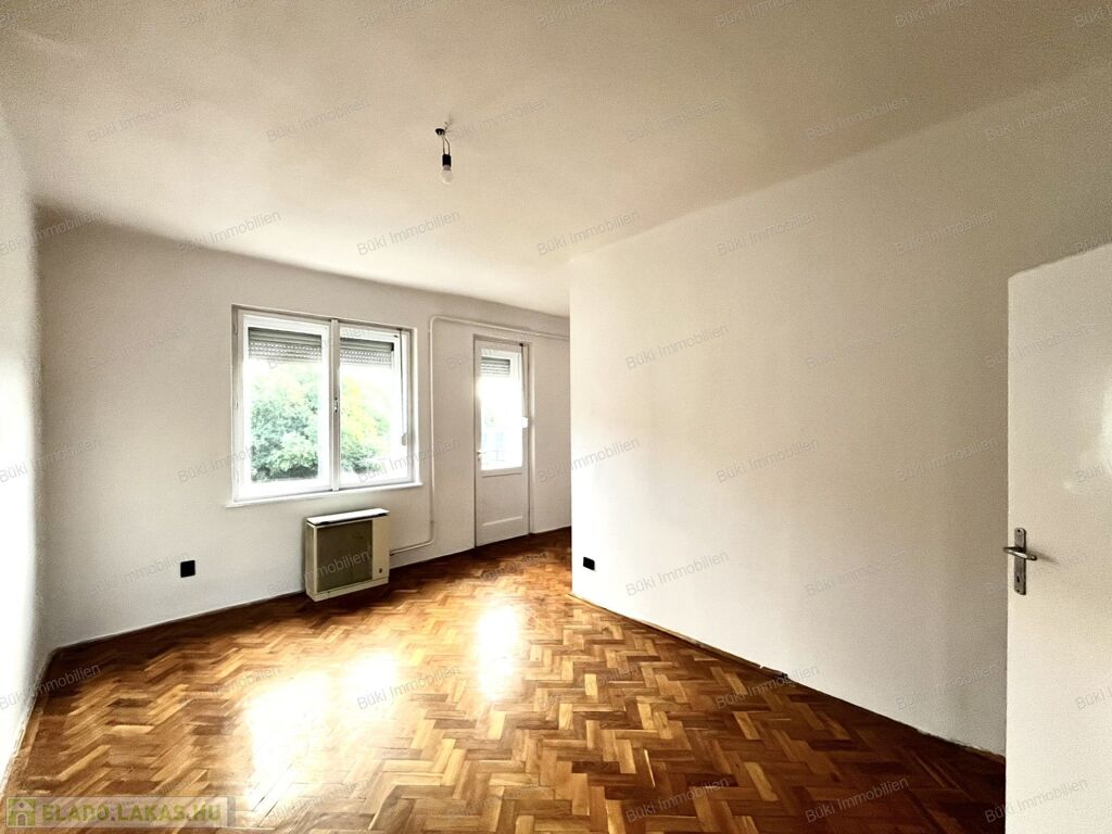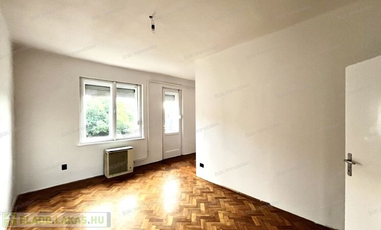A lakás elosztása egyedi, fekvése észak–déli, így minden helyiség világos és napfényes. A szobákban jó állapotú tölgyfa parketta található, mindenhol redőny növeli a kényelmet, a dupla fa ablakok pedig télen jól tartják a meleget, nyáron pedig kellemes klímát biztosítanak. A konyha kényelmes méretű, a hozzá tartozó kamra praktikus megoldást kínál. A fürdőszoba kádas, a WC külön helyiségben található, ami jelentős előnyt jelent a mindennapokban. A nappalihoz egy kisebb, 2 m²-es terasz kapcsolódik, amely bár nem nagy, mégis hangulatos pihenési lehetőséget nyújt.