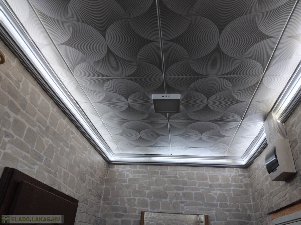 Műanyag nyílászárókkal, fém biztonsági ajtóval, teljes álmennyezettel.