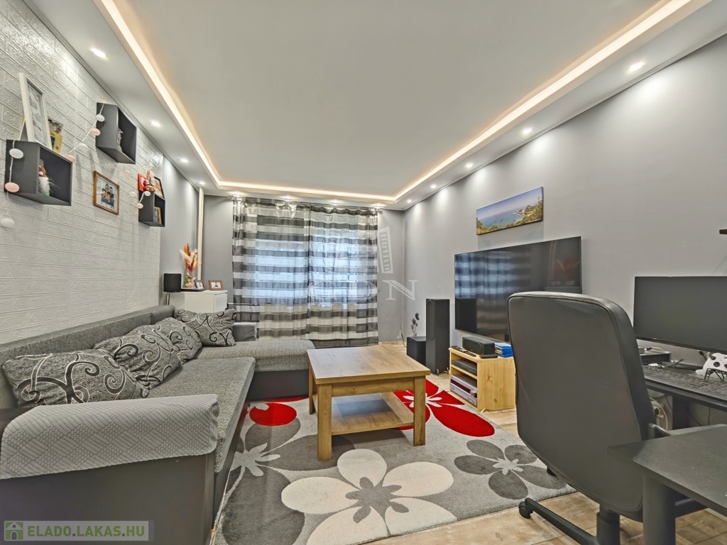 Eladó Miskolc, Győri kapuban, az Virág utcában, egy 2018-21. között részben FELÚJÍTOTT, 63 m2-es, 3 szobás, DÉLI fekvésű, EGYEDI MÉRŐS, földszinti (4 emeletes házban) panellakás.
