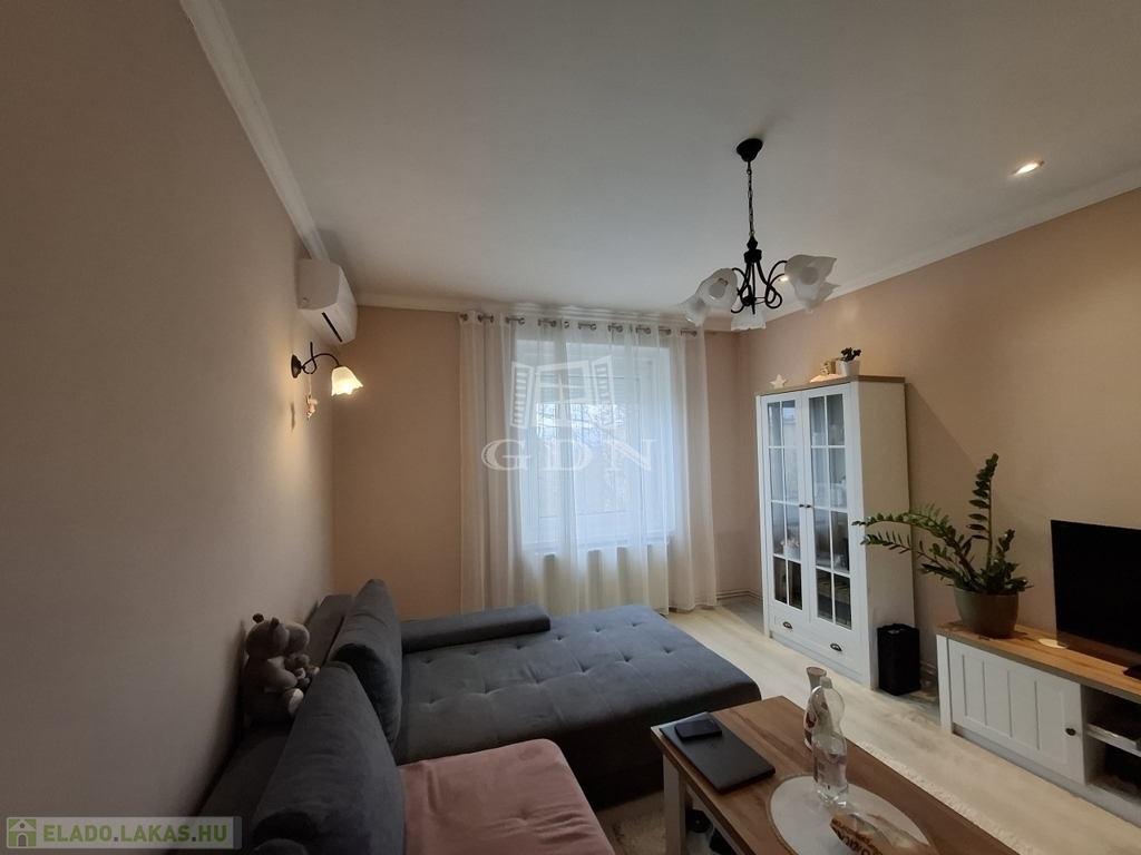 Házközponti fűtés és klíma biztosítja a kellemes hőmérsékletet. Minden nyílászáró hőszigetelt, szép állapotú, a lakás rendezett, tiszta, felújított.