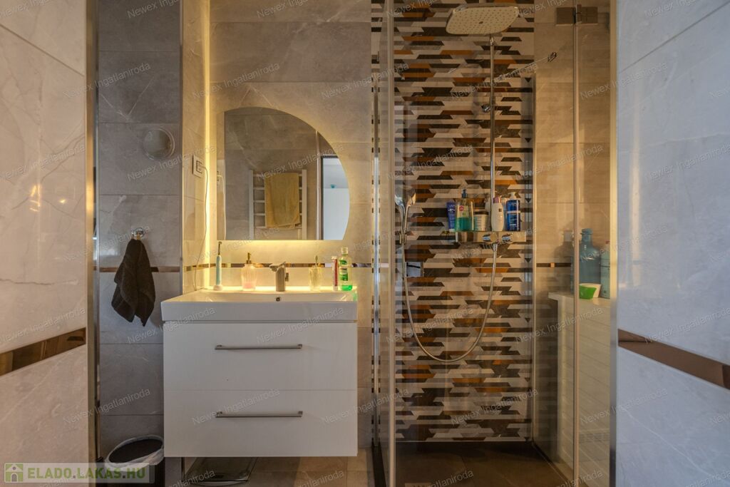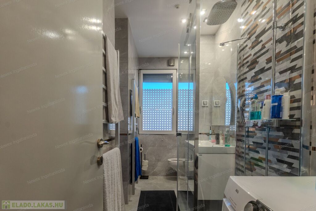 A fürdőszoba 2 éve teljes felújításon esett át, ahol elektromos padlófűtés is kiépítésre került.