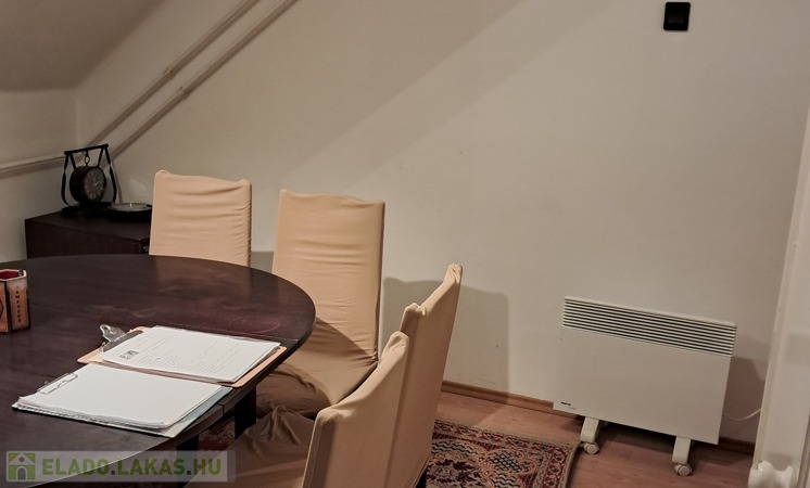 A lakás fölött még egy teljes belmagasságú járható padlás is van.