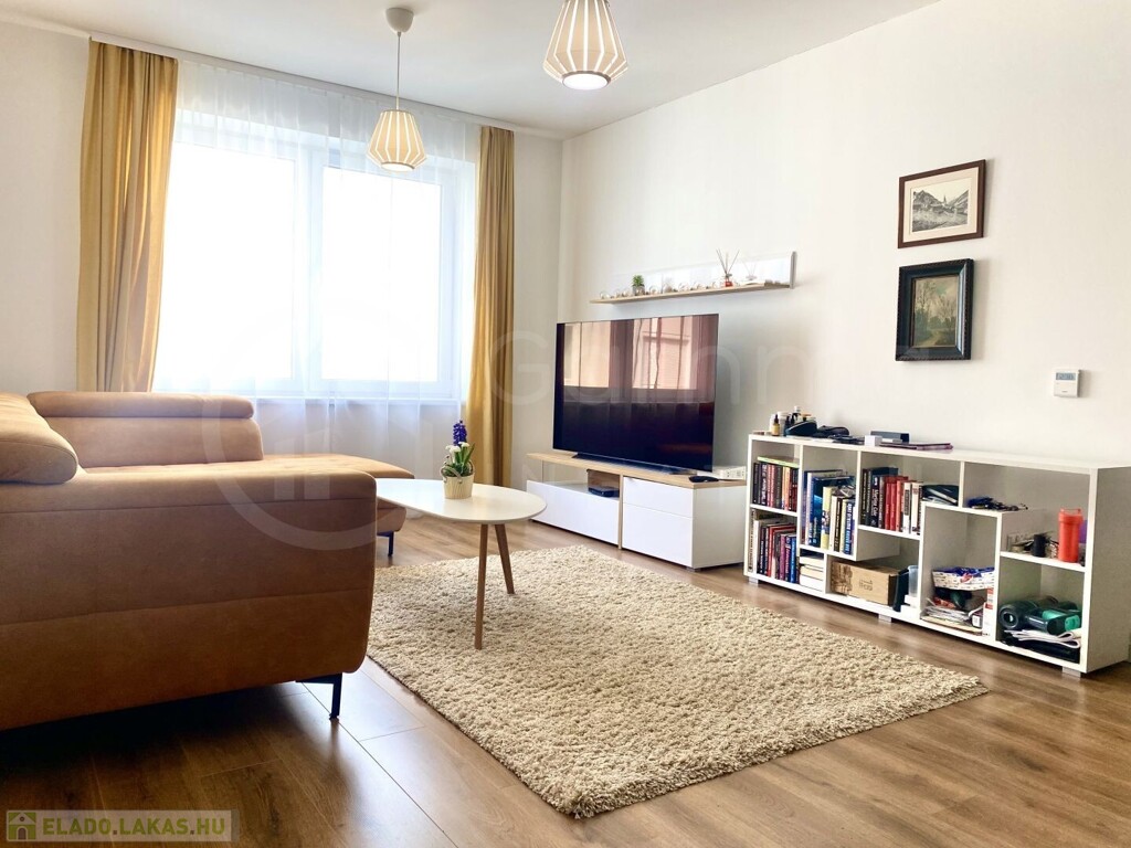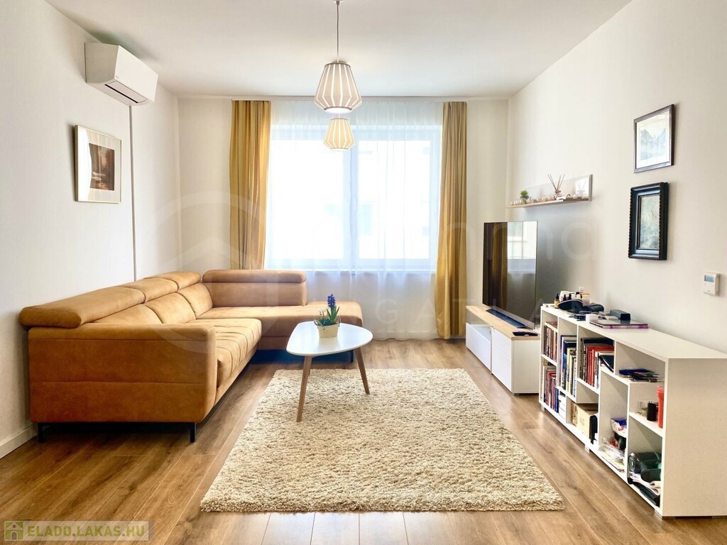 A lakás egy modern, téglaépítésű társasház 1. emeletén található. A 69 m²-es alapterület kiváló elosztású, tágas és világos tereket kínál:
