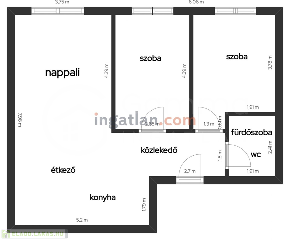 Az ingatlan 2019-ben épült,újszerű állapotú. A szobák lamináltlappal, a többi helyiség járólappal burkolt, a falak festettek a vizesblokkban pedig csempézettek. Bejárati ajtó műanyag tokozású, biztonsági.