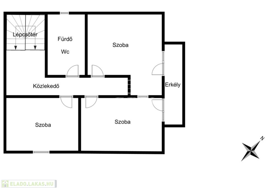 Elrendezés: nappali + 3 hálószoba