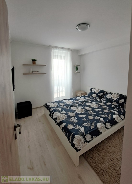 2018-ban, közel az osztrák és szlovák határokhoz, illetve az M1-es autópályához, a város ipartelepi részén, újonnan épült társasház 1. emeletén eladó egy 57 nm2-es, K-i tájolású, fiatalos tégla lakás. Elosztása: előszoba , 2 külön szoba, nappali-konyha , fürdőszoba, külön mellékhelyiség, 2 franciaerkély, külön kazán helyiség, amely tárolásra is alkalmas. Az ablakok redőnnyel és szúnyoghálóval felszereltek. 2024-ben beszerelt hűtő-fűtő klíma gondoskodik a nyári melegben a hűtésről, illetve télen padlófűtés a megfelelő melegről. A lakás a benne lévő beépített gépek és bútorok nagy részével együtt eladó, így kiváló lehetőség befektetőknek is. A társasház alatt, zárt udvarban teremgarázs hely bérelhető, illetve ugyan itt zárt, közös kerékpártároló is van. A környék csendes, közelben általános iskola, óvodák, bevásárlóközpontok, boltok találhatóak.