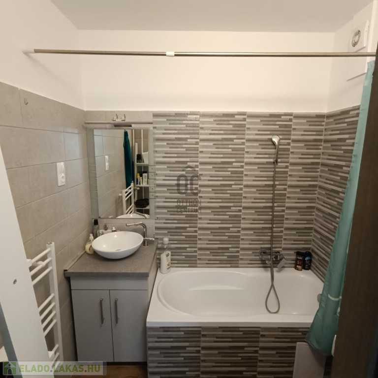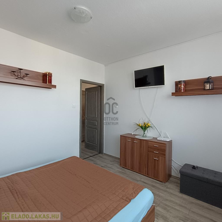 - felosztása: konyha, étkező-nappali, 1 hálószoba, amely erkélykapcsolatos, közlekedő, beépített szekrény, fürdő, külön WC, tároló