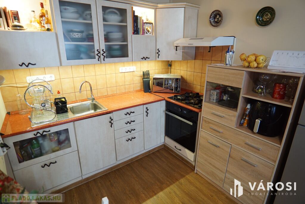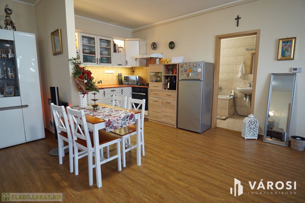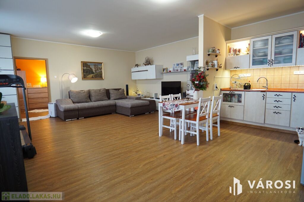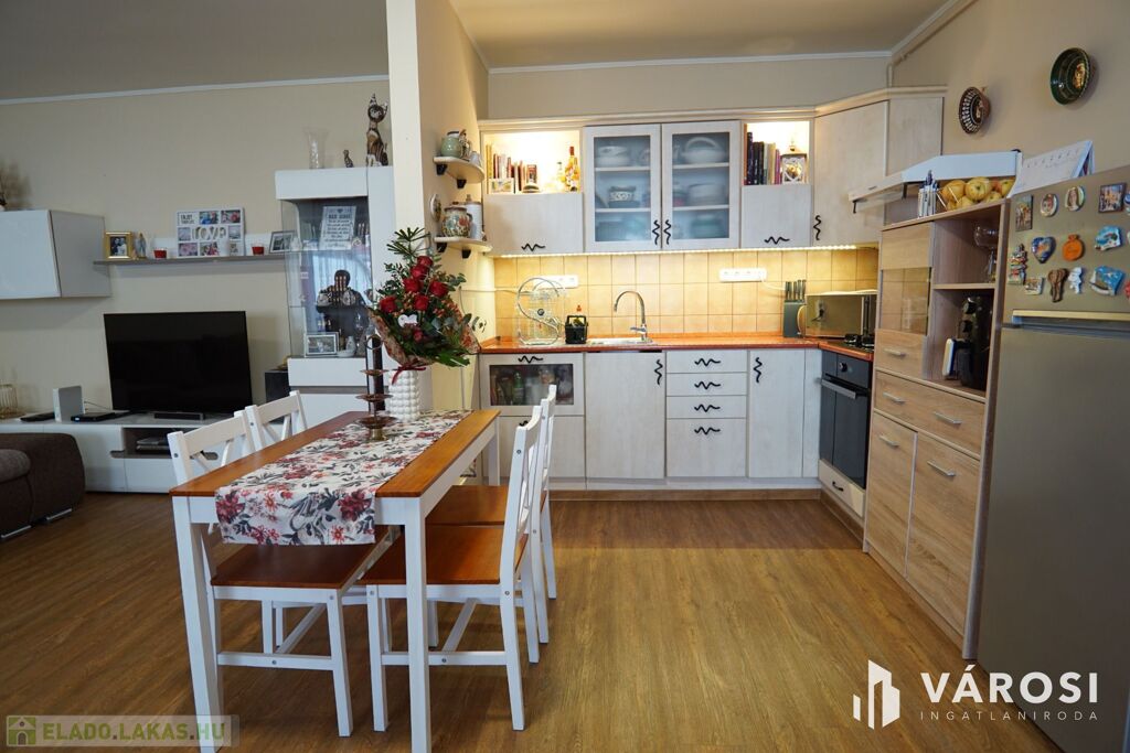 Nagykanizsa Belvárosában vált eladóvá, ez a 61m2-es, modern belső térrel rendelkező, amerikai konyhás, földszinti lakás. A mindösszesen 6 lakásból álló társasház, 2004-ben épült, tégla falazattal, belső zárt udvaros kialakításban. A tulajdonosok 2025-ben kisebb felújítási munkálatokat végeztek a lakásban.
