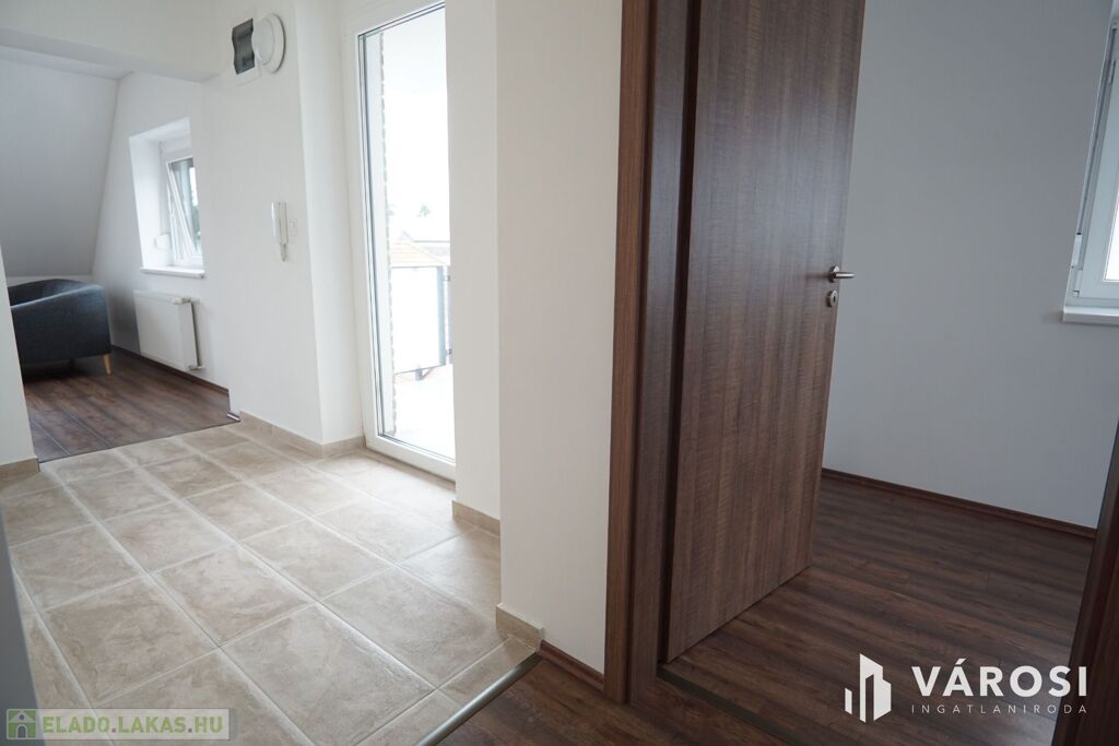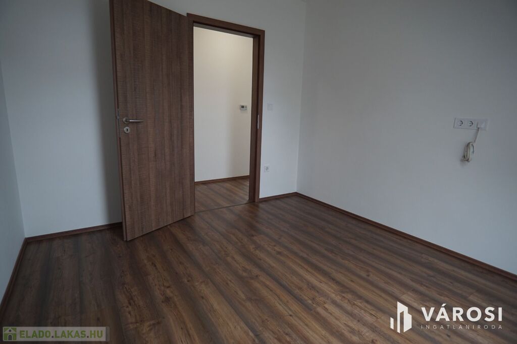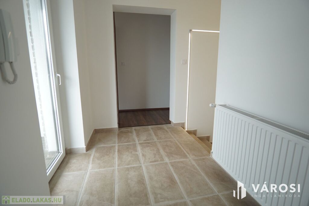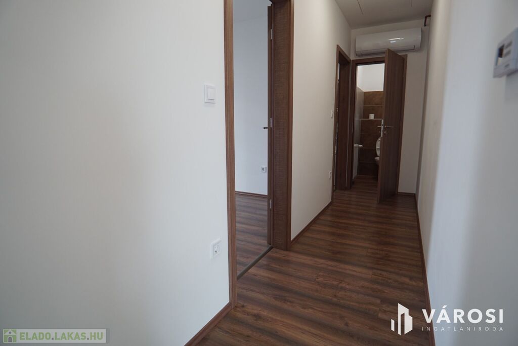 Nagykanizsa Belvárosában, de mégis csendes átmenő forgalomtól mentes utcájában, 2022-ben épült, zárt udvaros társasház, 2. emeletén vált eladóvá, ez az egyedi belső térrel rendelkező, szinte új társasházi lakás. Az ingatlan alapterülete nettó 66m2 -es aminek a Bruttó értéke 80m2-felett van. A lakás főbejárati ajtóján belépve, egy előtérbe érkezünk ahonnan pár lépcsőfok vezet fel a közlekedőbe. Ezen helységből balra haladva található a nagy légtérrel rendelkező amerikai konyha nappali étkező, jobbra haladva pedig a 2 külön bejáratú szoba, egy folyosó, a fürdő és a külön mellékhelység.