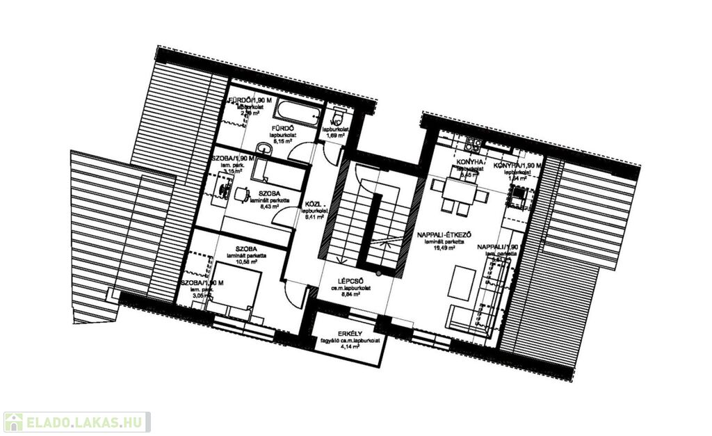 A lakáshoz ez szép nagy déli fekvésű erkély is tartozik.