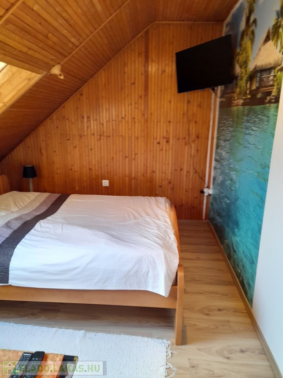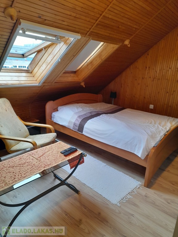 Zala megye, Nagykanizsa, összességében 140m2-es erkélyes lakás eladó. A dél-zalai település északi városrészén található, második emeleti, beépített tetőtérrel rendelkező ingatlan fogadó szintjén 3 hálószoba (melyekből az egyik erkélyes), egy dolgozószoba, gardrób, nappali, közlekedő, konyha, kamra, tároló, fürdőszoba és illemhelyiség, míg a tetőtérben szoba, konyha, közlekedő és fürdőszoba került kialakításra. A nyolcvanas évek elején épült társasház földszintjén a lakáshoz külön tároló is tartozik. A lakás melegéről gázkazán gondoskodik, radiátoros hőleadókkal. Az ingatlan felújítása, korszerűsítése (vezetékek, kazán, burkolatok stb cseréje) az elmúlt évben megtörtént. A kulturált lakóközösséggel rendelkező társasház zárt udvarán az ingatlanhoz gépjármű beálló is tartozik.