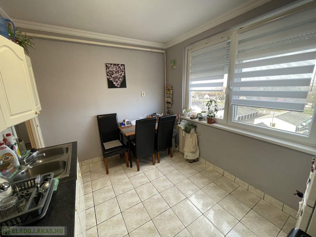 Nyíregyháza Örökösföldön, a Család utcán eladó egy 53 nm-es, 2 szobás, jó állapotú lakás egy 4 emeletes, panel falazatú társasház 4. emeletén. Az ingatlan nyugati fekvésének köszönhetően világos, napfényes, kellemes hangulatú otthon. Az erkély ideális helyszín lehet a délutáni pihenéshez vagy egy kávé melletti kikapcsolódáshoz. A praktikus elrendezés kényelmes életteret biztosít akár fiatal pároknak, kisebb családnak, de befektetés céljára is kiváló választás lehet. A lakás jó műszaki állapotban van. A nyílászárók műanyagok, egy kivételével már cserélve lettek. A fűtést távhő biztosítja, amely kedvező fenntartási költségeket eredményez. A nyári melegben klímaberendezés gondoskodik a komfortérzetről. A beépített szekrény praktikus tárolási lehetőséget kínál. A biztonságról acél biztonsági ajtó gondoskodik. A társasházhoz közös tároló is tartozik, amelyet mindössze két család használ. Amennyiben felkeltette az érdeklődését, hívjon bizalommal. Az ingatlan azonosítója: 99882Érdeklődni: +36703610015 Az ingatlan azonosítója: 99882 Érdeklődni: +36703610015