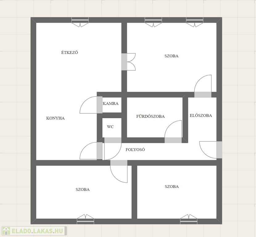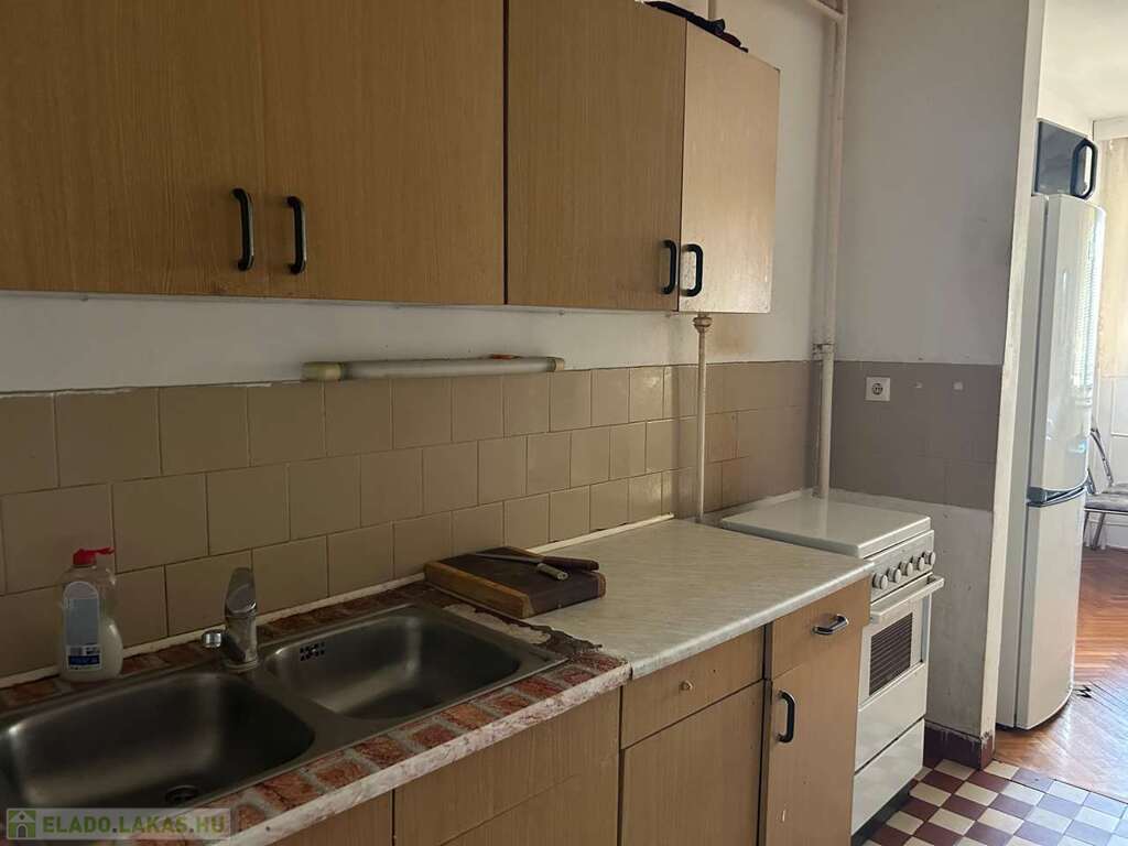 Nyíregyháza, Vasgyár utcán eladó 64 m2-s, három különnyíló szobás, konyha+étkezős, külön fürdőszoba és wc, kamra, műanyag nyílászárós, mért távhős felújítandó lakás téglaépítésű társas házban a harmadik emeleten. Közös tároló és zárt udvari parkolás tartozik a lakáshoz.