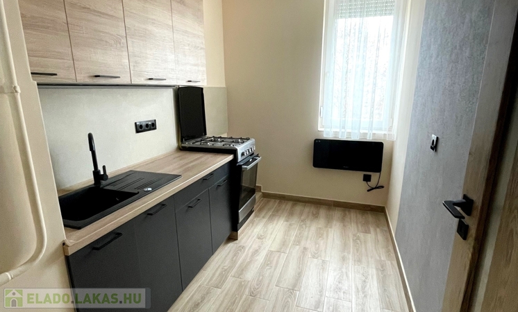 Nyíregyházán a Belváros közelében eladó egy teljes körűen felújított, azonnal költözhető, 49 m²-es lakás, amely egy szigetelt, téglaépítésű társasház 4. emeletén található, az Arany J. u. elején. A lakás modern kialakítású, praktikus elrendezésű, burkolatai járólap és laminált kombinációja. Új, gépesített konyhabútorral rendelkezik elektromos főzőlappal, a fűtésről két gázkonvektor és egy hűtő-fűtő klíma gondoskodik. Tartozik hozzá külön tároló és udvari parkolási lehetőség is biztosított. A társasház rendezett, jól karbantartott és szigetelt. A lakás esztétikailag és műszakilag is újszerű, alacsony fenntartási költségekkel, így ideális fiataloknak, pároknak vagy befektetésnek, mivel könnyen kiadható.Az ingatlan azonosítója: 100015Érdeklődni: +36703610015 Az ingatlan azonosítója: 100015 Érdeklődni: +36703610015