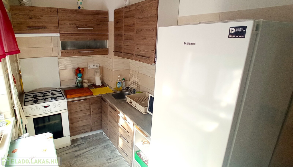 A lakás redőnyözött műanyag nyílászárókkal felszerelt, fűtését egy 2022-ben kicserélt egyedi gázkazán biztosítja radiátoros fűtési rendszerrel. A felújított állapotú ingatlan, szobái laminált parkettával burkoltak a többi helyiség pedig járólappal, a fürdőszobában zuhanykabin került beépítésre és itt kapott helyet a WC is. A szép világos keleti-nyugati fekvésű lakás konyhájában jó állapotú konyhabútor található, és egy külön kamra is tartozik hozzá.