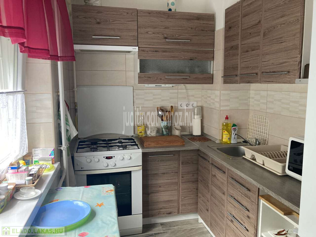Nyíregyházán a Malomkertben eladó 54 m2-s, kettő különnyíló szobás, műanyag nyílászárós mely redőnnyel felszerelt, egyedi gázfűtésű, jó állapotú lakás téglaépítésű társas házban az első emeleten. Az ingatlan zárt udvaros házban helyezkedik el, tartozik hozzá egy 18 m2-s udvari garázs, alagsorban zárható kb. 6 m2-s pince a beépített konyhabútor és kombi tűzhely. Költözés megegyezés szerint.