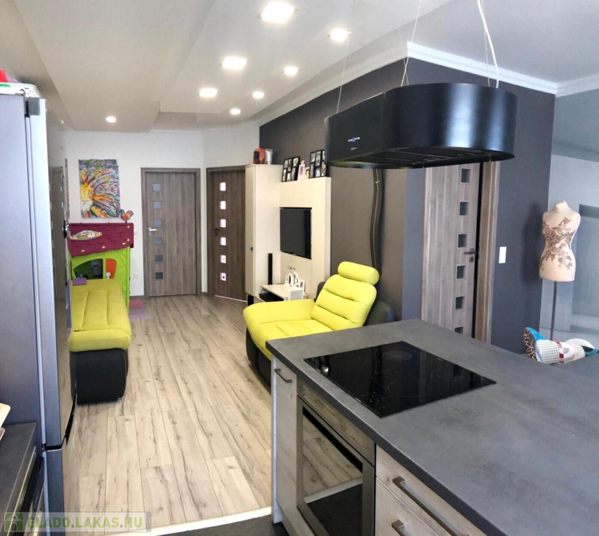 Nyíregyházán a Búza tér közelében tégla építésű társasház 2. emeletén eladó egy, 74 nm-es 1+2 szoba +nappalis, két erkélyes, egyedi gázfűtéses, műanyag és WELUX tetőtéri ablakokkal, klímával felszerelt szép lakás. Az ingatlan felújítása során cserélve lettek a víz és villanyvezetékek, a beltéri nyílászárók és a burkolatok is. A lakásba egy egyedi konyhabútor és beépített szekrények kerültek beépítésre. A modern fürdőszoba és a kézmosóval felszerelt WC külön helyiségben található. A TEHERMENTES INGATLAN KIZÁRÓLAG KÉSZPÉNZES VÁSÁRLÓNAK ELADÓ!