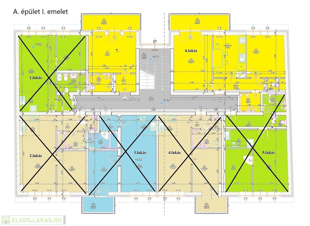 L6: 1. emelet, 61,02 m2 (8,3 erkély) N+1 szoba Ár: 56.748.600 FtL13: 2. emelet, 61,2 m2 (8,3 erkély) N+1 szoba Ár: 56.916.000 FtL15: Tetőtér, 58,62 m2 (12,61 erkély) N+1 szoba Ár: 54.516.600 FtL16: Tetőtér, 63,06 m2 (9,36 erkély) N+1 szoba Ár: 58.645.800 FtL17: Tetőtér, 60,55 m2 (9,02 erkély) N+1 szoba Ár: 56.311.500 FtL18: Tetőtér, 55,7 m2 (11,34 erkély) N+1 szoba Ár: 51.801.000 Ft