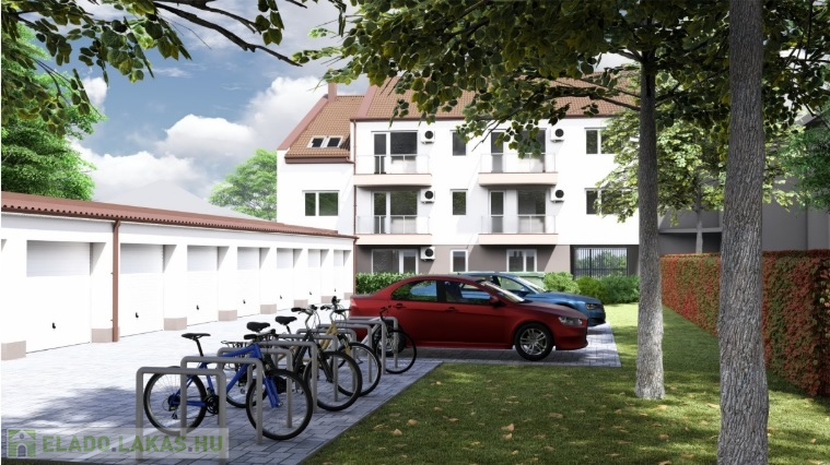A lakás mellé külön megvásárolható garázs 9M Ft-ért vagy kocsibeálló 2,5M Ft-ért.