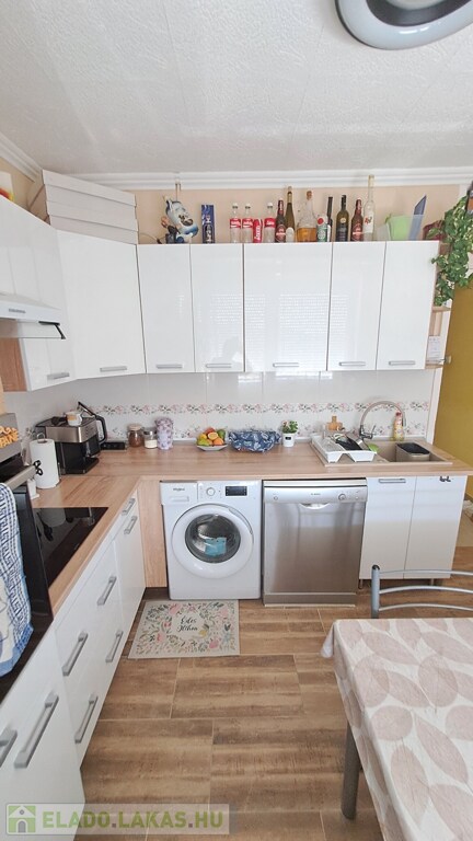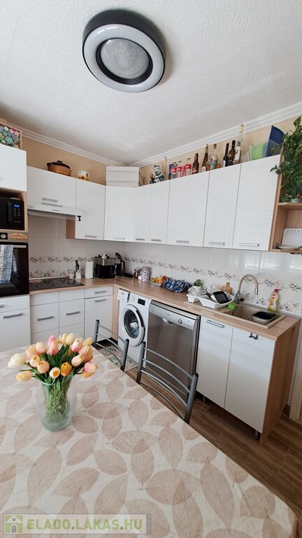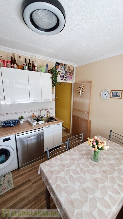 A lakás külön fürdőszobás és WC-s, mért távhővel felszerelt, műanyag nyílászárókkal és redőnnyel. Saját erkéllyel és tárolóval rendelkezik, burkolatai járólap és laminált parketta. A fürdőszoba felújított, a konyha egyedi bútorral beépített. Tehermentes, költözés megegyezés szerint.