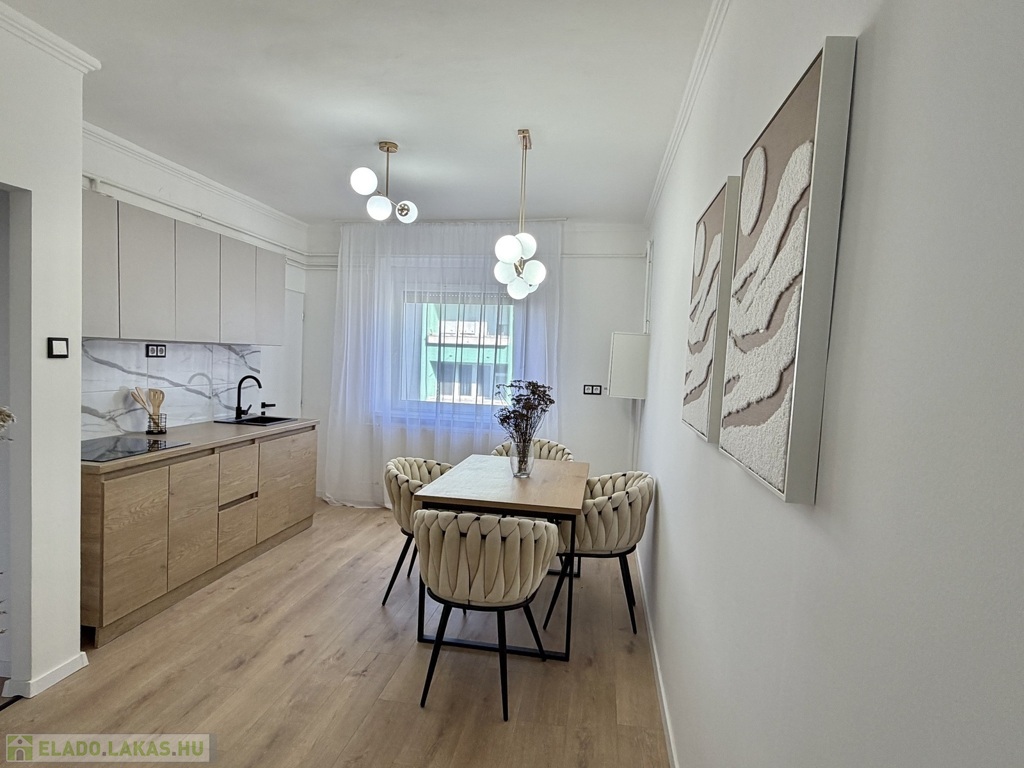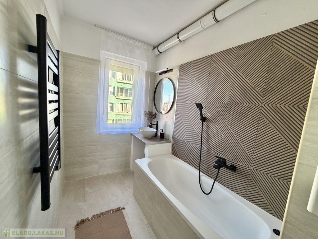 A lakás teljes körű felújításon esett át, mely során elektromos áram és vízvezeték csere is történt, új fürdőszoba, új konyha, új beltéri és bejárati ajtó, új hűtő-fűtő klíma, új bútorok kerültek beépítésre, egyedi gázfűtéses, redőnnyel, rovarhálóval szerelt műanyag nyílászárós, új laminált padló, járólap burkolatú.