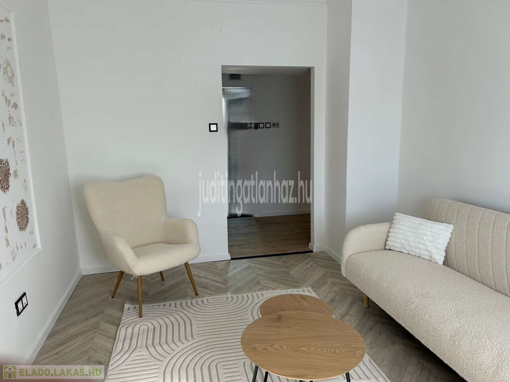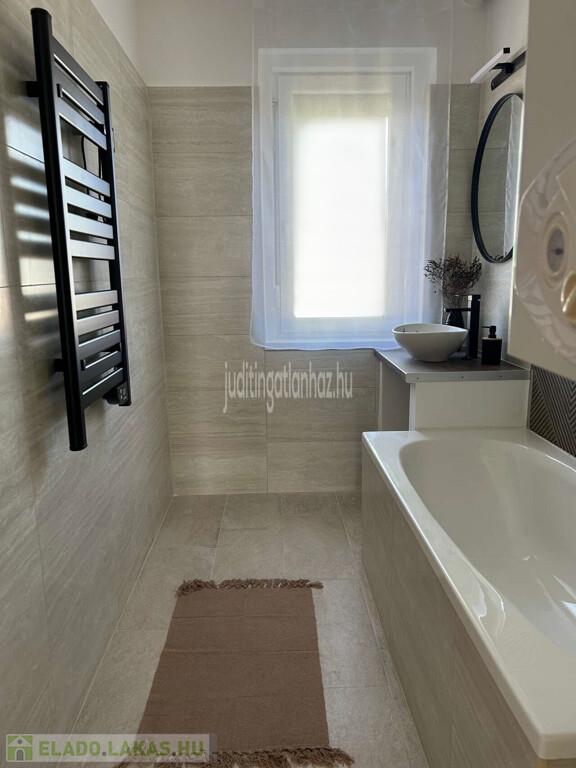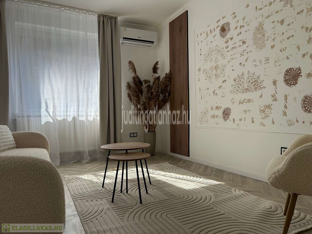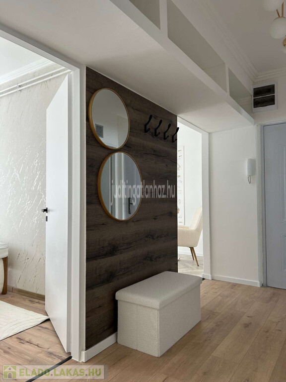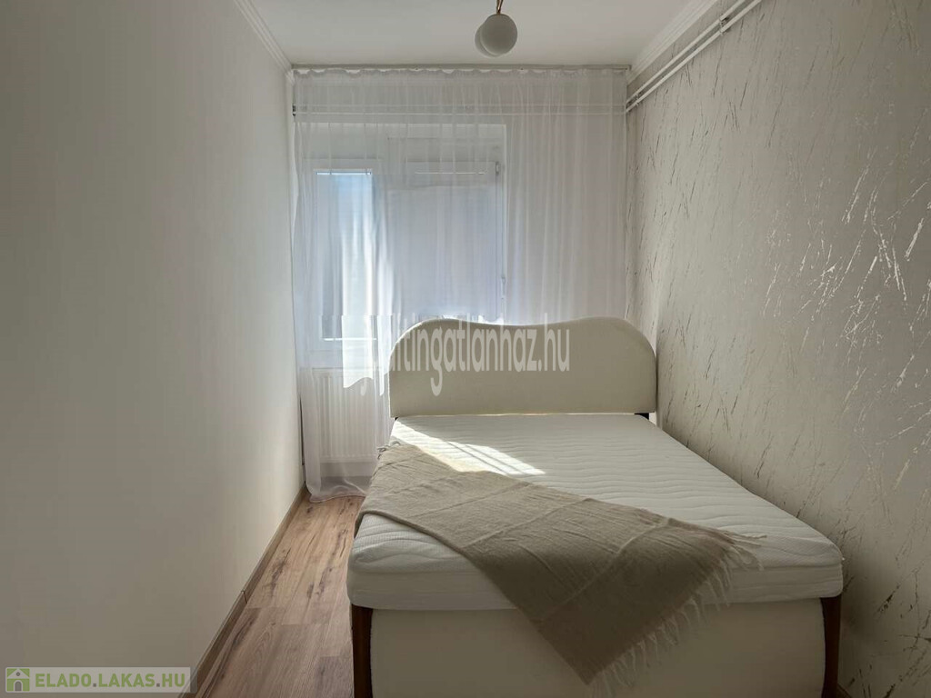 Nyíregyházán a Megyei kórház közelében eladó 59 m2-s, három különnyíló szobás, nagy konyha+étkező, külön fürdőszoba és wc, kamra, erkélyes, műanyag nyílászárós mely redőnnyel felszerelt, egyedi gáz és klíma fűtésű felújított lakás téglaépítésű szigetelt 6 lakásos zárt udvaros társas házban a második emeleten. Az ingatlan 2025-ben teljes felújításon esett át, vezeték és csövek cseréje megtörtént, új burkolat, minőségi falfestés. Az ingatlan ára a fotón látható teljes új bútorzattal együtt értendő, továbbá tartozik hozzá egy 13 m2-s udvari garázs az alagsorban saját tároló és saját udvari kert rész. Parkolni az utcán lehet díjtalanul. Az igényesen felújított és berendezett tehermentes ingatlanba költözni akár azonnal!